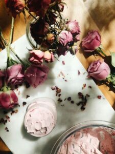 A list of dried rose petals uses wouldn’t be complete without a moisturizing body butter. Women in the know rave about the skin-softening properties of rose petals. To get the ultimate moisturizing skin treat, grind your dried flower petals into a powder. Stir the powder into your favorite whipped body butter. Enjoy velvety soft skin.