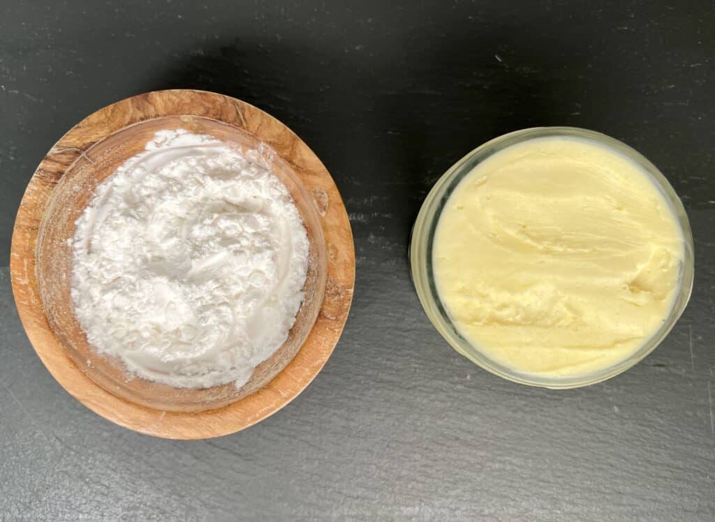 If you want to make a completely natural body butter, free of any synthetic ingredients, but don’t love the high density texture (ok, greasy) feeling that it can have on your skin, there are two easy options to help with this.