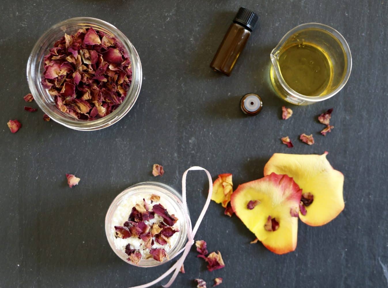 - Add 6 drops of Rose Otto essential oil and using the fork or whisk, mix everything well