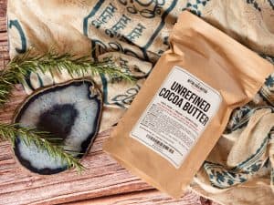 The next ingredient is Yellow Shea Butter, this is pure unrefined shea butter with one additional ingredient, the extract of the African Borututu Tree. It has been used by African natives for centuries to help with healing and soothing the skin. The inside of this tree is a deep yellow color and is how our Yellow Shea Butter gets its color. This butter does not contain palm oil or other ingredients as some yellow shea butters have. See our article on yellow shea butter for more information.