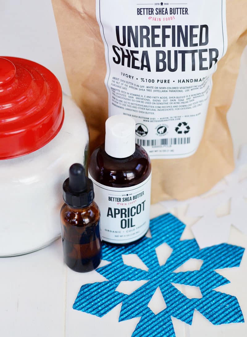 Is there anything more luscious than whipped shea butter? The rich and creamy texture of whipped shea is dangerously close to that of buttercream frosting. It’s pretty much dessert for your skin – especially when it’s blended with exfoliating sugar and a few drops of invigorating peppermint essential oil.
